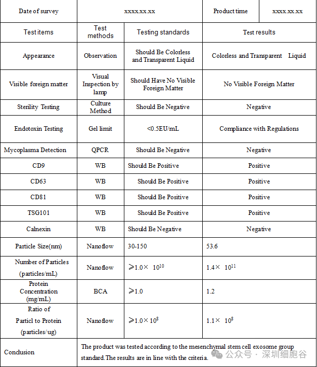 CVEXSOTM外泌体放行质量检测报告