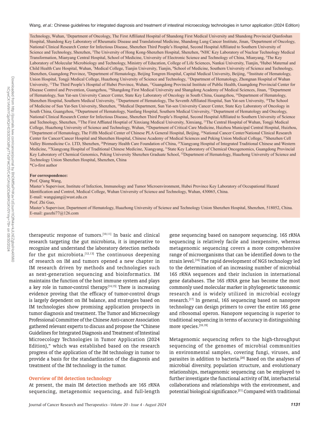 近期,中国抗癌协会肿瘤与微生态专业委员会组织相关专家共同讨论,由华中科技大学协和深圳医院郭智主任和武汉科技大学医学部王强教授牵头制定《中国肿瘤应用肠道微生态技术综合诊疗指南(2024年版)》,我司董事长史渊源教授参与该指南制定,该指南根据肠道微生态技术在肿瘤中应用的研究进展而制定,为肠道微生态技术在瘤体内的诊断和治疗标准化给予依据。