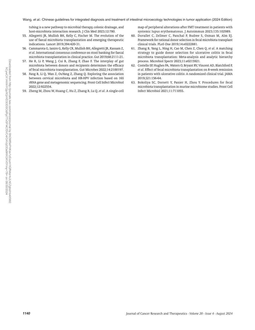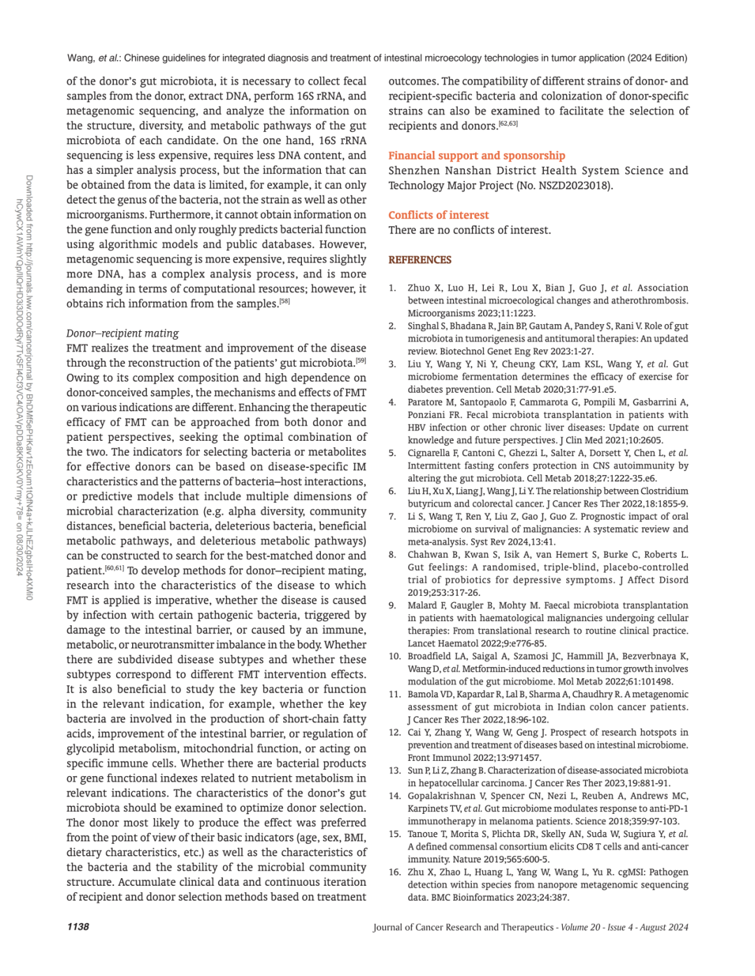 我司史渊源教授参与中国肿瘤应用肠道微生态技术综合诊疗指南(2024年版)英文版制定