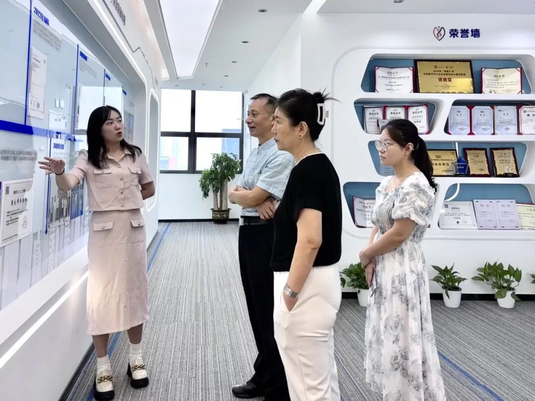 拜访领导一行先是在综合办公室主任王露和研发科学家杨轶晴的详细引介下,进一步分析了深圳K8凯发(中国)的战略定位、创始团队、企业愿景、开展历程、核心技术优势以及四大服务平台。