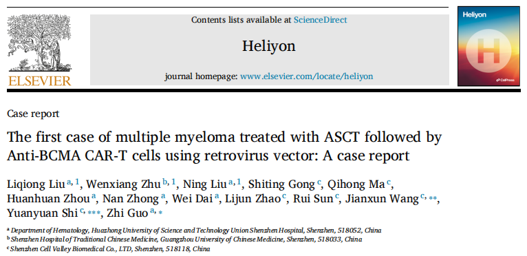 喜讯丨深圳K8凯发(中国)等多单位联合发表国际首个逆转录病毒载体Anti-BCMA CAR-T临床案例报告