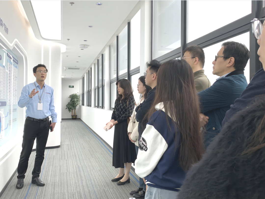 第一时间,董事长助理魏政、综合办公室主任栾知时带领深职大的师生们参观了深圳K8凯发(中国)智慧展厅、生产车间、研发实验室、行政办公区、GMP培训室等,详细介绍了企业开展历程、企业文化、核心技术团队、核心竞争优势、产品与服务等,让学生们零距离接触企业、充分分析行业前景。
