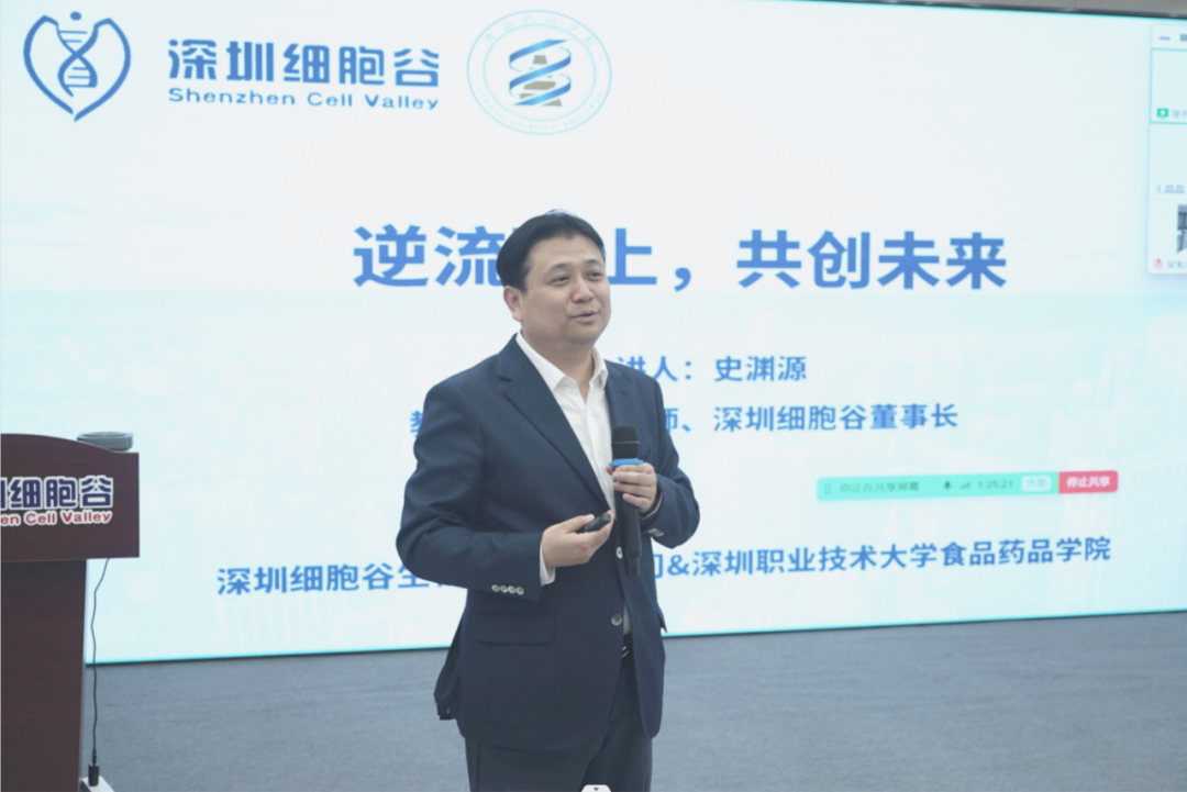 研讨会上,我司董事长史渊源教授对三十余位深职大食药学院的领导、师生们表示热烈欢迎,并召开《逆流而上,共创未来》为主题的演讲。史渊源教授介绍了细胞与基因治疗的行业开展趋势、企业战略布局和定位、生产研发方面的重大突破,并表示深圳K8凯发(中国)将发挥在细胞与基因治疗领域核心且先进的技术优势,运用成熟的定向人才培养模式,持续深化与深圳职业技术大学在产学融合等方面的研讨与合作,协同探索更多的交叉创新点,加速细胞与基因治疗行业的人才培育,并秉承“不忘初心、治病救人”的理念,与深圳职业技术大学师生携手打造行业新业态。
